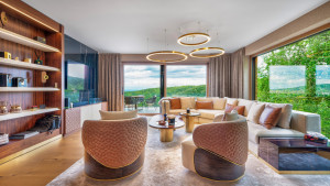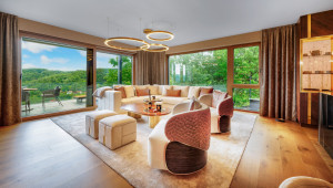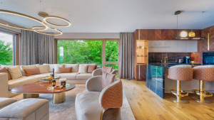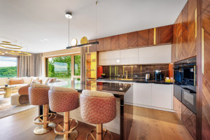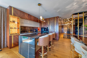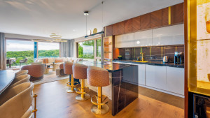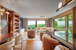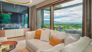 Központi tere a több mint 60 nm-es DNy-i panorámás nappali–konyha–étkező, amely a 43 nm-es panorámaterasszal egybenyitható, így a belső és külső terek között tökéletes átmenet jön létre.
