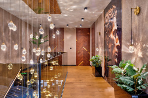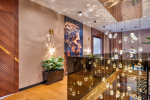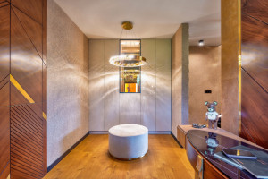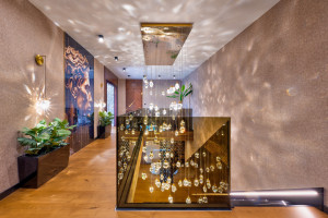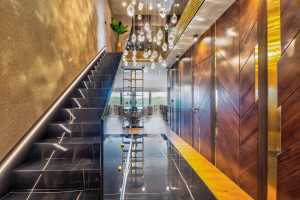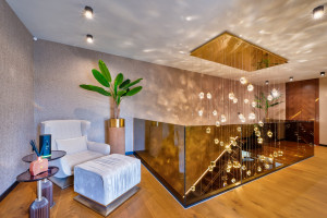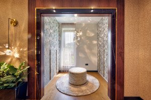 Belső terekben: Marazzi 60×120-as burkolatok, Sahara Noir kőporcelán díszítéssel