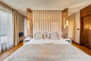 A felső szinten 2 luxus hálószoba lakosztály kapott helyet és két nagy terasz (14, 16 nm) biztosít lenyűgöző kilátást.